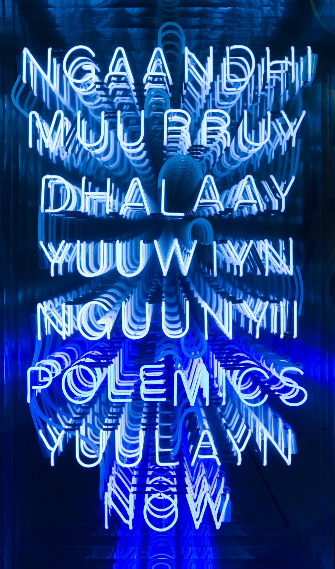 From Bark to Neon: Indigenous Art from the NGV Collection is an exhibition running from 3 November 2018 to 14 July 2019 and seeks to display the evolution of Indigenous Art in Australia. It presents artists from all over Australia, coming from different backgrounds, from individuals working in Aboriginal art centres to art school graduates working independently (NGV 2018). Like the title of the exhibition states, it shows the evolution of artworks from traditional forms such as cave paintings to a more modern interpretation through the use of neon lights, as shown in Brook Andrew’s Polemic (Figure 1), which utilises neon and mirrors to convey his ideas. This exhibition’s intentions align with those of the Australian Indigenous Design Charter (AIDC), where they seek to promote the representation and commission of Australian Aboriginal and Torres Strait Islander culture through design (AIDC 2016) Where artists wish to convey their experiences through their artwork, the AIDC wishes that more designers would promote ethical use of these experiences in their design work, while still capturing the raw essence.